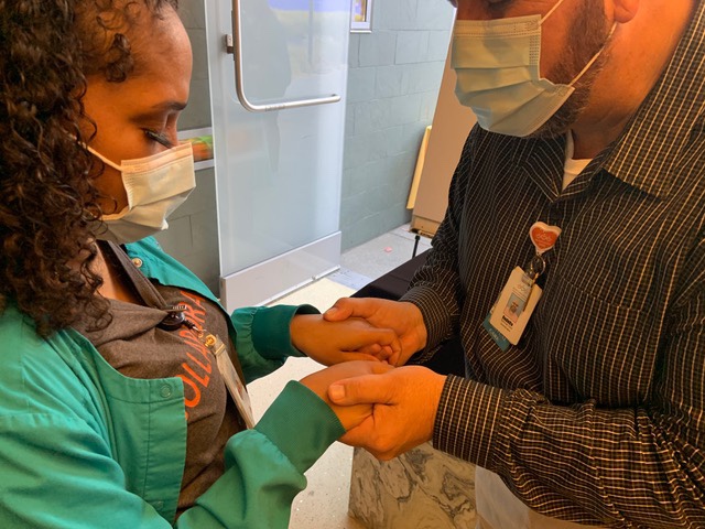 Praying for staff at MLK Community Hospital in the Watts/ Willowbrook part of South Los Angeles